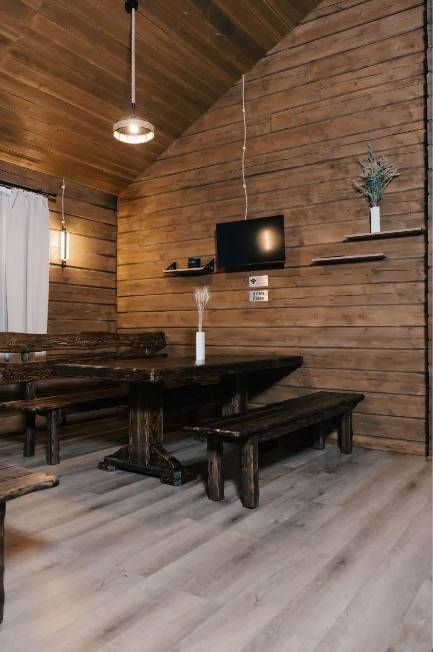 Очень уютное классное место. В домах все предусмотрено для комфортного отдыха. Шелковое постельное, чистота повсюду, клевая сауна. Наделали кучу фото, друзья не верят что это место так близко к нам ее и по смешным ценам)